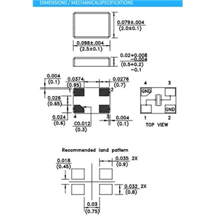 | Frequency Tolerance @ 25°C | ± 20PPM, see options |