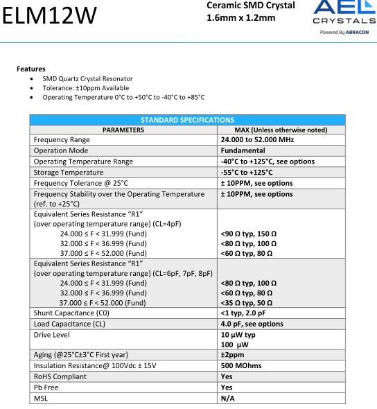 AEL晶振,ELM12W晶振,ELM12W-24.000MHz-6-R120-D7X-T晶振,貼片晶振本身體積小,超薄型石英晶體振蕩器,特別適用于有目前高速發(fā)展的高端電子數(shù)碼產(chǎn)品,因?yàn)榫д癖旧硇⌒突枨蟮氖袌鲱I(lǐng)域,小型,薄型是對應(yīng)陶瓷振蕩器(偏差大)和普通的石英晶體振蕩器(偏差小)的中間領(lǐng)域的一種性價(jià)比較出色的產(chǎn)品.產(chǎn)品廣泛用于筆記本電腦,無線電話,衛(wèi)星導(dǎo)航SSD,USB,Blu-ray等用途,符合無鉛焊接的高溫回流焊曲線特性.AEL晶體有限公司是ISO 9002-2008認(rèn)可的供應(yīng)商,目前管理著廣泛的國際認(rèn)可的藍(lán)籌客戶。