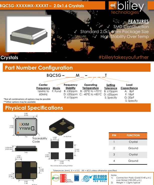 Bliley晶振,BQCSG晶振,BQCSG-16.000M-FDBBFT晶振,貼片晶振本身體積小,超薄型石英晶體振蕩器,特別適用于有目前高速發(fā)展的高端電子數(shù)碼產(chǎn)品,因為晶振本身小型化需求的市場領域,小型,薄型是對應陶瓷振蕩器(偏差大)和普通的石英晶體振蕩器(偏差小)的中間領域的一種性價比較出色的產(chǎn)品.產(chǎn)品廣泛用于筆記本電腦,無線電話,衛(wèi)星導航SSD,USB,Blu-ray等用途,符合無鉛焊接的高溫回流焊曲線特性.Bliley晶振公司發(fā)展歷史: