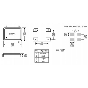 Bomar晶振,B1701-DEAS3R-20.000000晶振,TCXO溫補(bǔ)晶振