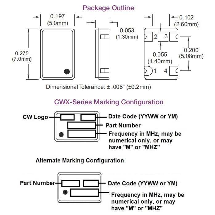 CWX8xx型-系列,5.0x7.0mm表面安裝封裝