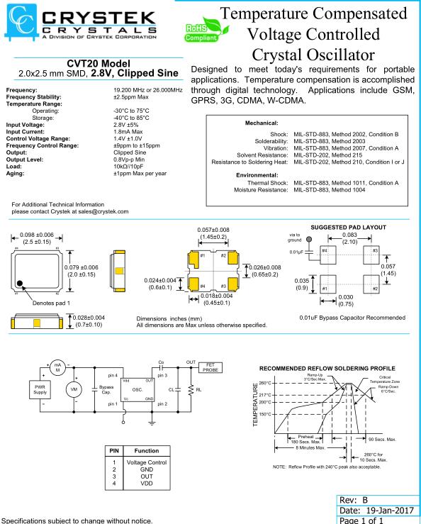 Crystek晶振,CVT20晶振,TCXO溫補(bǔ)晶振