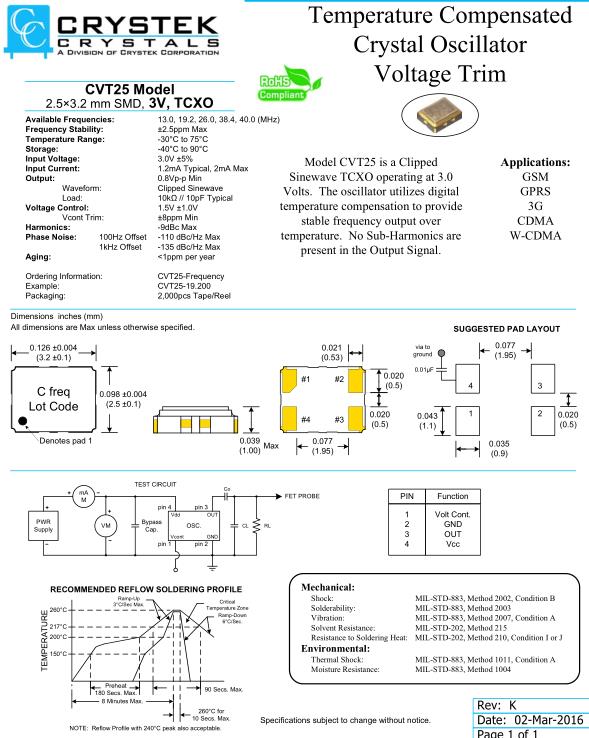 Crystek晶振,CVT25晶振,CVT25-19.200晶振
