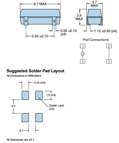 | 頻率溫度特征 | f_tem | ±30 × 10-6/-20°C ~ +70°C | 超出標準的規格請聯系我們. |