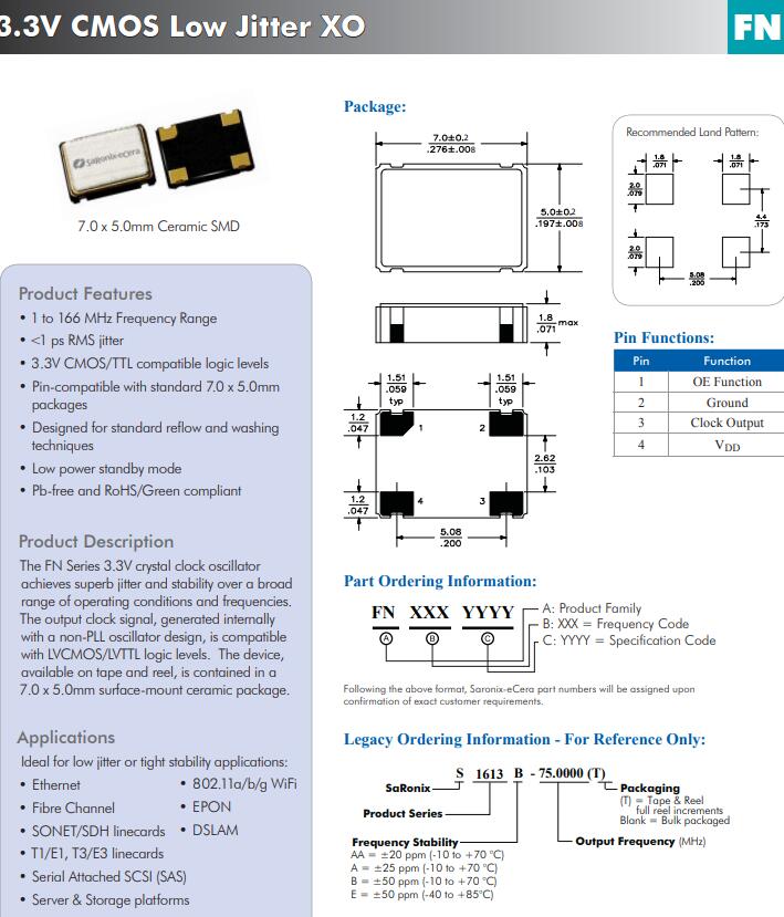 | FN5000145 | Diodes晶振 | SaRonix-eCera™ FN | 50MHz | ±50ppm | -40°C ~ 85°C |