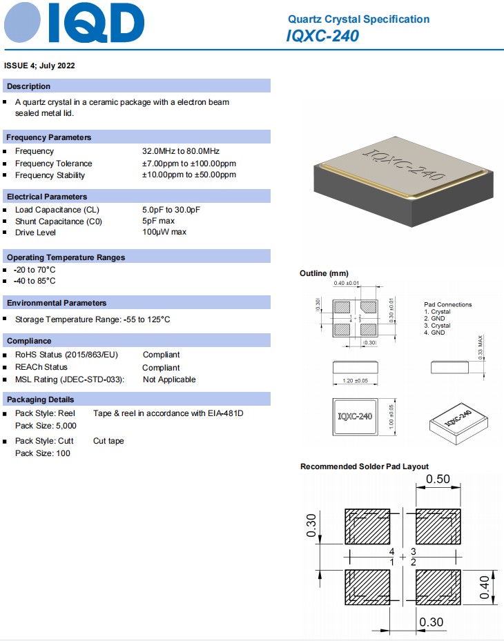 更多>>石英晶體IQXC-240有助于將EMI輻射降至最低