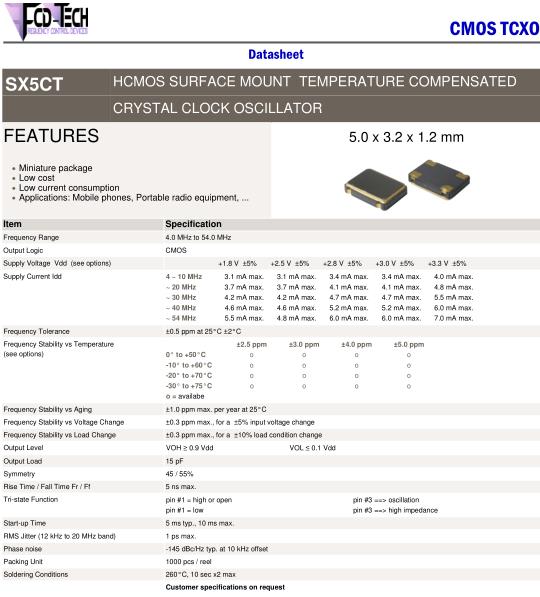 - 產品描述:FCD-Tech晶振,SX5CT晶振,SX5CT-30F3.0F4P-16.000MHz晶振,5032mm體積的石英晶體振蕩器,有源晶振,該產品可驅動2.5V的溫補晶振,壓控晶振,VC-TCXO晶體振蕩器產品,電源電壓的低電耗型,編帶包裝方式,可對應自動高速貼片機自...