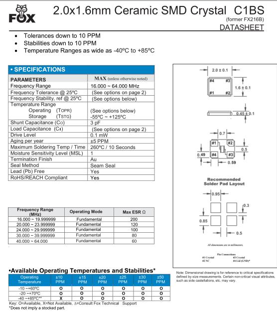 | FOX晶振規(guī)格 | 單位 | C1BS晶振頻率范圍 | 石英晶振基本條件 |