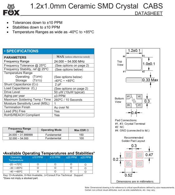 | FOX晶振規格 | 單位 | CABS晶振頻率范圍 | 石英晶振基本條件 |