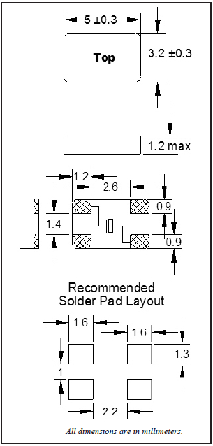 福克斯晶振C5BQ,FQ5032B-20.000無源晶體 尺寸圖