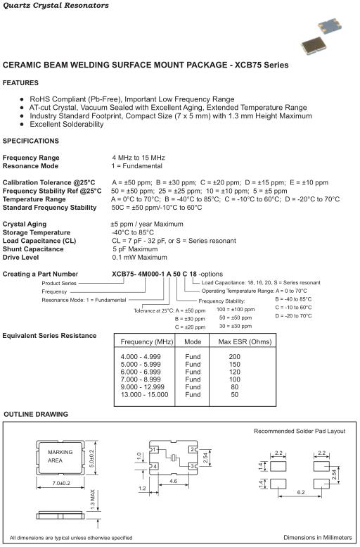 Fortiming晶振,XCB75晶振,XCB75-4M000-1A10C18晶振