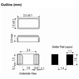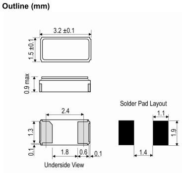 | Ageing | ±3ppm max in 1st year @ 25°C |