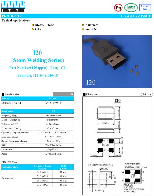 ITTI晶振,I20晶振,I2010-16.000-18晶振