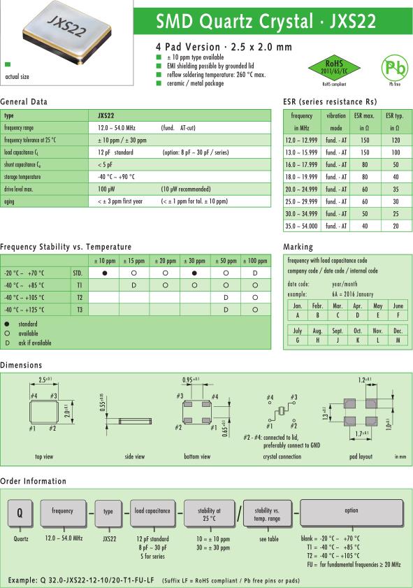 | Jauch晶振規(guī)格 | 單位 | JXS22晶振頻率范圍 | 石英晶振基本條件 |