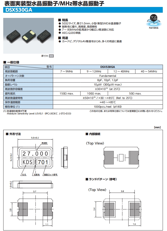 | KDS晶振 | 1C710000CE1A | DSX530GA | 5032 | 10.000MHZ | ||
