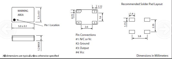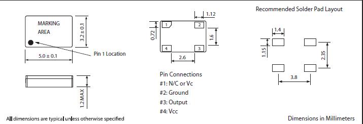 | Control Voltage (Vc, Option) | +2.5±1.0 VDC for Vcc = 5.0V; 1.5±1.0 VDC for Vcc = 3.0V |