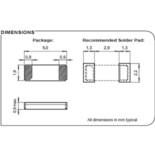 微晶晶振CC4V-T1A,CC4V-T1A-32.768k-9pF-20PPM-TA-QA音叉晶體 尺寸圖