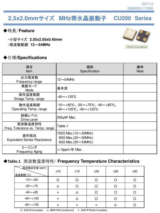NAKA晶振,CU200晶振,水晶振動(dòng)子,小體積貼片2520mm晶振,外觀小型,表面貼片型晶體振蕩器,因本身體積小等優(yōu)勢,適用于移動(dòng)通信終端的基準(zhǔn)時(shí)鐘等移動(dòng)通信領(lǐng)域.小型,薄型,輕型,具備優(yōu)良的耐環(huán)境特性及高耐熱性強(qiáng).滿足無鉛焊接的回流溫度曲線要求.納卡晶振公司是使用模擬電路技術(shù),擅長定制規(guī)格的水晶設(shè)備制造廠。有強(qiáng)烈要求“低相位噪聲、高頻、高信賴性”的通信設(shè)備、廣播設(shè)備、測量儀器、交通基礎(chǔ)設(shè)施、醫(yī)療器械、防衛(wèi)設(shè)備。另外,現(xiàn)在已經(jīng)成為問題了,對(duì)生產(chǎn)中止,實(shí)現(xiàn)長期性的產(chǎn)品供應(yīng),以滿足顧客未來的企業(yè)為目標(biāo)。