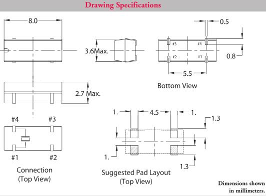 | Aging @ 25°C | ±3 ppm/Year (Typ)/ ±5 ppm/Year (Max) |