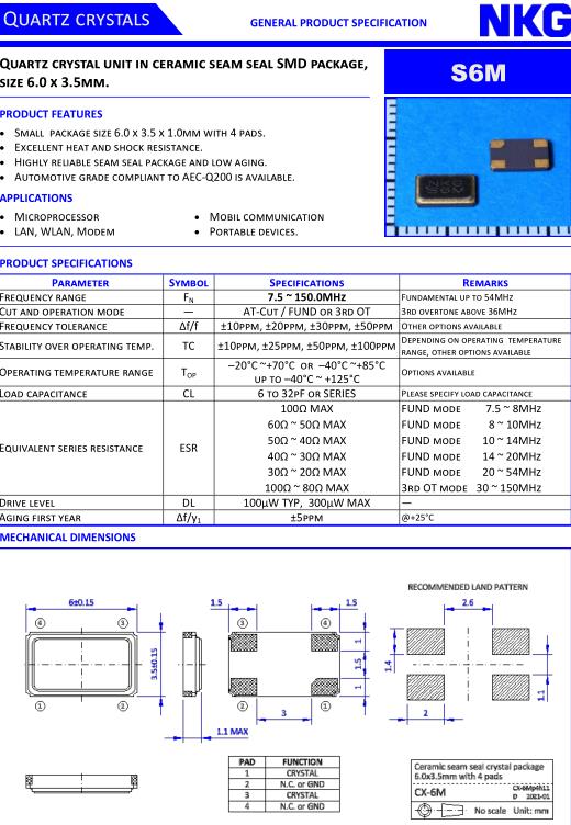| Load capacitance | CL | 6 to 32pF or SERIES | Please specify load capacitance |