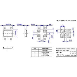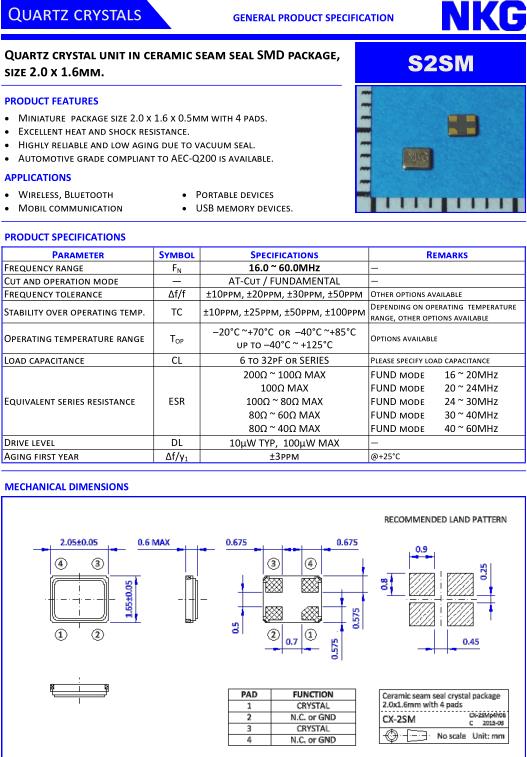 用于JEDEC J-STD-020D.01回流條件的耐熱可用性需個別判斷。請聯系我們以便獲取相關信息。NKG晶振,S2SM晶振,S2SM-20.0000F-18E2-EXT晶振.