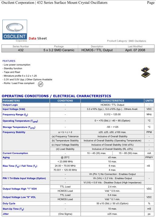 Oscilent晶振,432晶振,432-12.0M-3EN-T-TS晶振,5032mm體積的石英晶體振蕩器,有源晶振,該產品可驅動2.5V的溫補晶振,壓控晶振,VC-TCXO晶體振蕩器產品,電源電壓的低電耗型,編帶包裝方式,可對應自動高速貼片機自動焊接,及IR回流焊接(無鉛對應),為無鉛產品,超小型,質地輕.產品被廣泛應用到集成電路,程控交換系統,無線發射基站.Oscilent是全球頻率控制設備制造商,在SAW濾波器,晶體振蕩器,陶瓷諧振器和石英晶體產品類別中提供廣泛的優質產品。請訪問我們的公司頁面,或訪問我們的主要產品頁面,了解我們的標準SAW濾波器,晶體振蕩器,陶瓷諧振器,RF濾波器和石英晶體產品的完整系列。我們屢獲殊榮的設計人員非常樂意評估和測試您的定制要求。