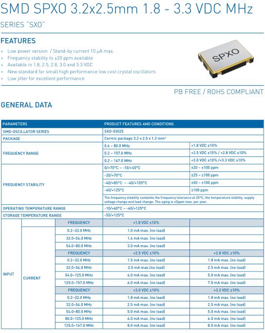 PETERMANN晶振,SXO-03025晶振,SXO18-03025-SE20M-27.000MHz-T晶振,小型SMD有源晶振,從最初超大體積到現(xiàn)在的7050mm,6035mm,5032mm,3225mm,2520mm體積,有著翻天覆地的改變,體積的變小也使產(chǎn)品帶來(lái)了更高的穩(wěn)定性能,接縫密封石英晶體振蕩器,精度高,覆蓋頻率范圍寬的特點(diǎn),SMD高速自動(dòng)安裝和高溫回流焊設(shè)計(jì),Optionable待機(jī)輸出三態(tài)輸出功能,電源電壓范圍:1.8V~5V,高穩(wěn)定性,低抖動(dòng),低功耗,主要應(yīng)用領(lǐng)域:無(wú)線(xiàn)通訊,高端智能手機(jī),平板筆記本W(wǎng)LAN,藍(lán)牙,數(shù)碼相機(jī),DSL和其他IT產(chǎn)品的晶振應(yīng)用,三態(tài)功能,PC和LCDM等高端數(shù)碼領(lǐng)域,符合RoHS/無(wú)鉛.我們?cè)陬l率控制產(chǎn)品(FCP)的開(kāi)發(fā)、生產(chǎn)和銷(xiāo)售方面積累了豐富的專(zhuān)業(yè)知識(shí)。運(yùn)用我們長(zhǎng)期的經(jīng)驗(yàn),我們最大限度地減少了終端系統(tǒng)設(shè)計(jì),同時(shí)縮短了上市時(shí)間。結(jié)合我們深入的技術(shù)服務(wù)(設(shè)計(jì)、模擬、測(cè)試和驗(yàn)證),我們通過(guò)提供正確的解決方案緊急解決客戶(hù)的問(wèn)題。您可以信賴(lài)我們可靠的優(yōu)質(zhì)供應(yīng)商的經(jīng)驗(yàn),他們致力于提供最具創(chuàng)新性的頻率控制組件。