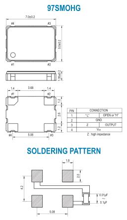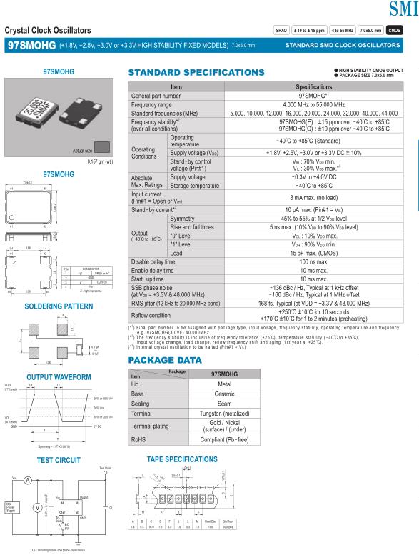 97SMOHG( F ): ±15 ppm over -40゜C to +85゜C 97SMOHG(G): ±10 ppm over -40゜C to +85゜C |