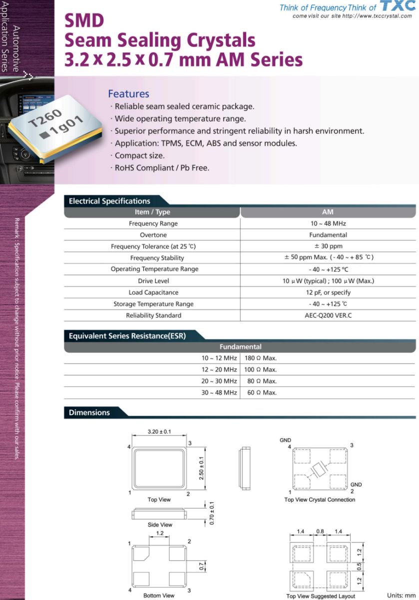 | AM48070004 | TXC晶振 | AM | 48MHz | ±20ppm | ±10ppm | 4.7pF |