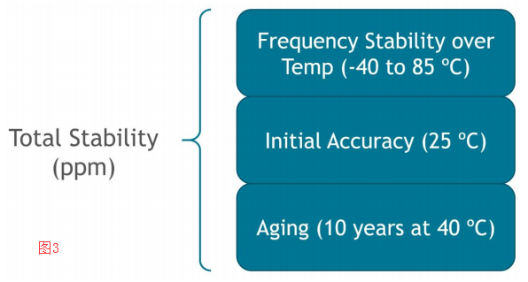 頻率穩(wěn)定性衡量有源晶體振蕩器的輸出頻率由于溫度變化,在運(yùn)行期間可能發(fā)生變化,如果頻率漂移超出應(yīng)用程序的預(yù)期,可能會(huì)出現(xiàn)定時(shí)誤差發(fā)生,頻率穩(wěn)定性以百萬分率或ppm表示,相對(duì)于特定溫度范圍內(nèi)的標(biāo)稱頻率,完整的測(cè)量潛在的頻率偏差稱為總穩(wěn)定性,它是總和頻率穩(wěn)定性隨溫度變化,初始精度在25°C,老化超過a指定的時(shí)間和溫度,如圖3所示,總穩(wěn)定性揭示了振蕩器可能產(chǎn)生的最壞情況可能的頻率使用壽命.