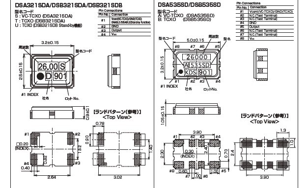 振蕩器DSA321SDA,KDS石英振蕩器,壓控溫補晶振3225晶振,"1XTV10000CDA"具有最適合于移動通信設備用途的高穩定的頻率溫度特性.為對應低電源電壓的產品.(可對應DC +1.8 V±0.1 V to +3.2 V±0.1 V )高度:最高1.0 mm,體積:0.007 cm3,重量:0.024g,超小型,輕型.低消耗電流,表面貼片型產品.(可對應回流焊)無鉛產品.滿足無鉛焊接的回流溫度曲線要求.