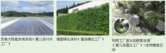 京瓷集團全體員工都積極地投身環保活動,希望能夠在兼顧環保性和經濟性的同時,實現可持續發展.尤其是在節能、溫室效應對策方面,投入節能設備、安裝太陽能發電系統、實施墻面綠化等開展了一系列節能活動.此外,還開展了保護生物多樣性等活動.京瓷為區域發展做出的貢獻受到了高度評價,連續5年榮獲日本環境省頒發的“防止全球變暖活動環境大臣表彰獎”,成為獲獎次數最多的企業.