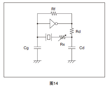 與晶振串聯(lián)連接上純電阻 Rx,確認(rèn)振蕩的開始或結(jié) 束.緩慢地使 Rx 值逐漸變大 , 開始或結(jié)束振蕩時 的最大電阻 Rx 加上晶振的有效電阻 Re,就是該電 路的大概負(fù)性電阻的數(shù)值.