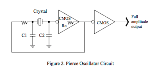 •Pierce放大器可以設計為CMOS,TTL和ECL中的數字邏輯元件;低頻CMOS,中頻TTL和ECL對于高頻率.