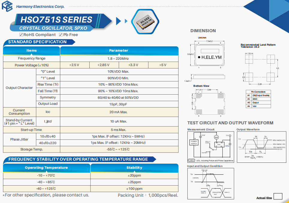 | X1C026000B81H-V | 加高晶振 | HSX111SA | 26 MHz | ±20ppm | 26pF |